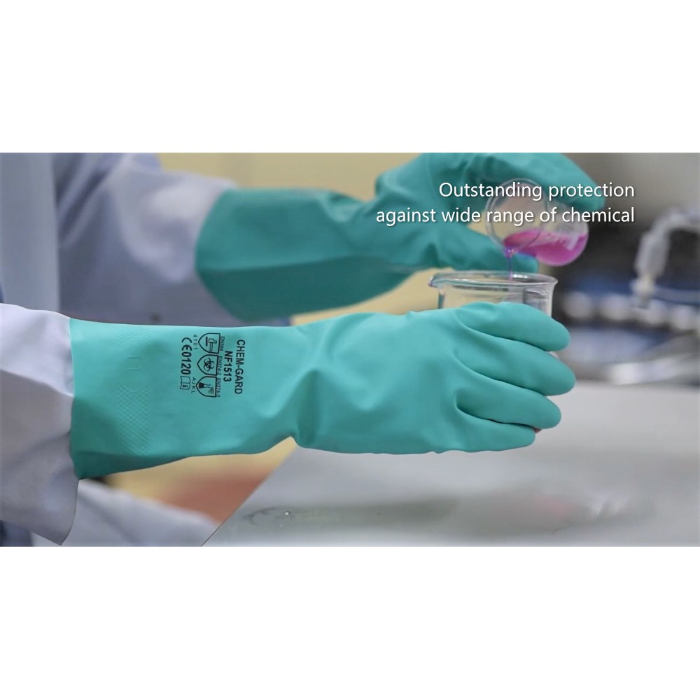 Giới thiệu Găng tay Chem-Gard NF1513 cấu tạo nitrile, Găng tay chống dầu, hóa chất, axit, thấm hút mồ hôi tốt - Chính hãng