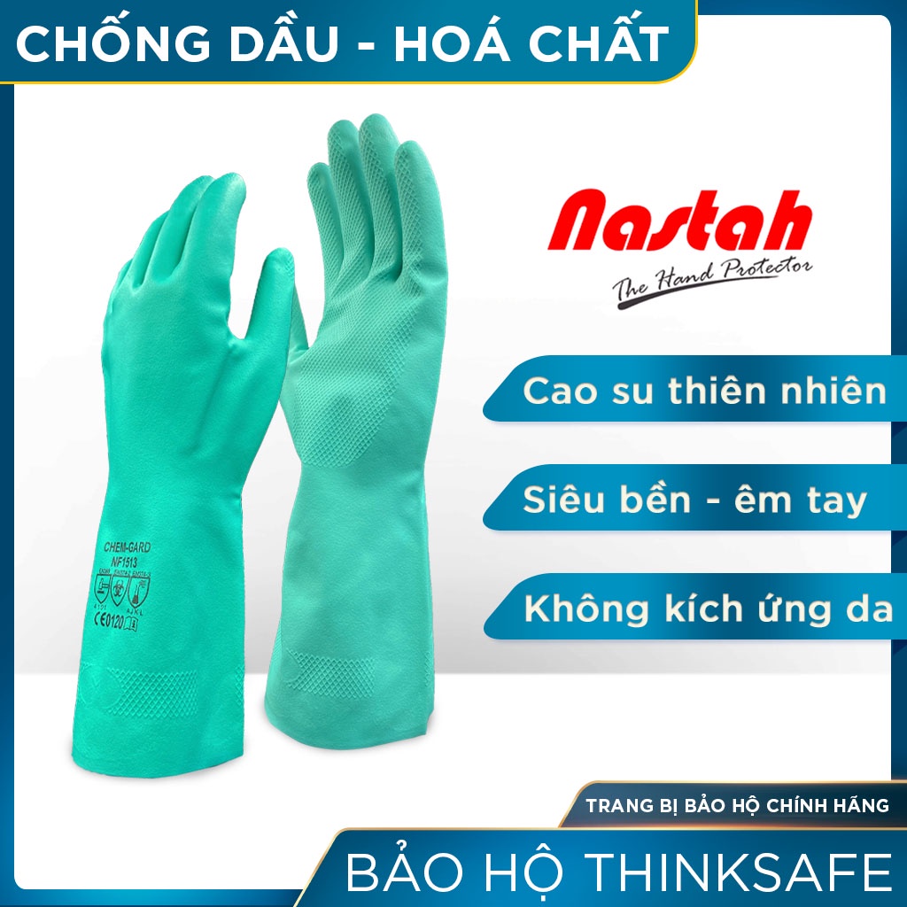 Giới thiệu Găng tay chịu dầu Nastah Thinksafe, bao tay cao su, chống hóa chất, thoáng, êm tay, vân trám, xuất xứ Malaysia - NF1513