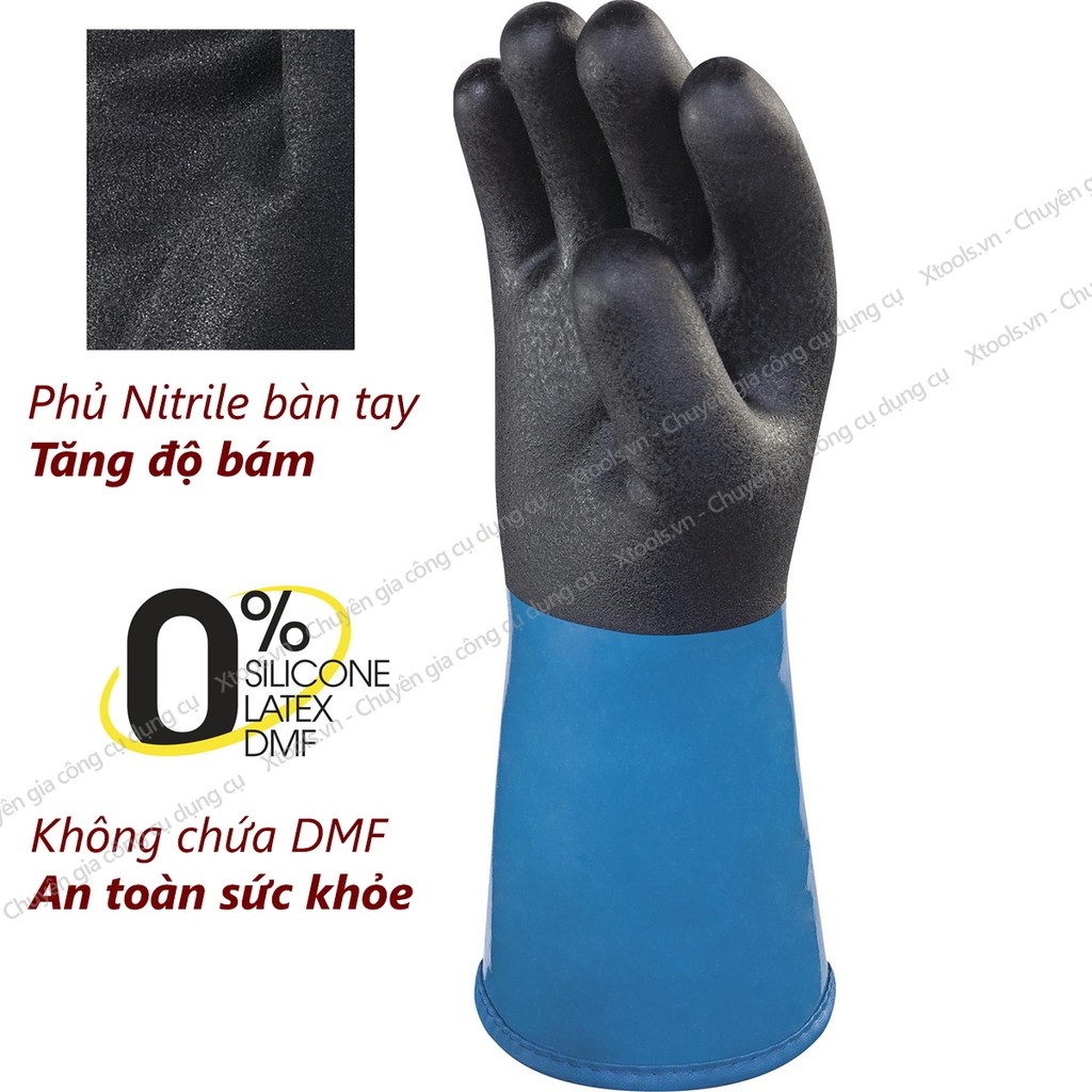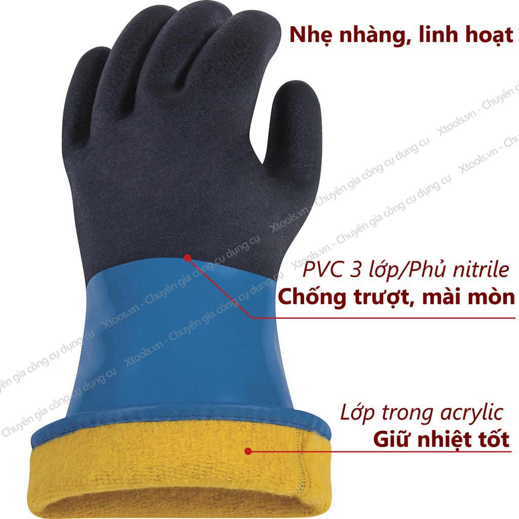 Găng tay chịu lạnh Deltaplus VV837, bao tay chống lạnh -40 độ C, chống hóa chất, phủ Nitrile chống trượt, linh hoạt cao