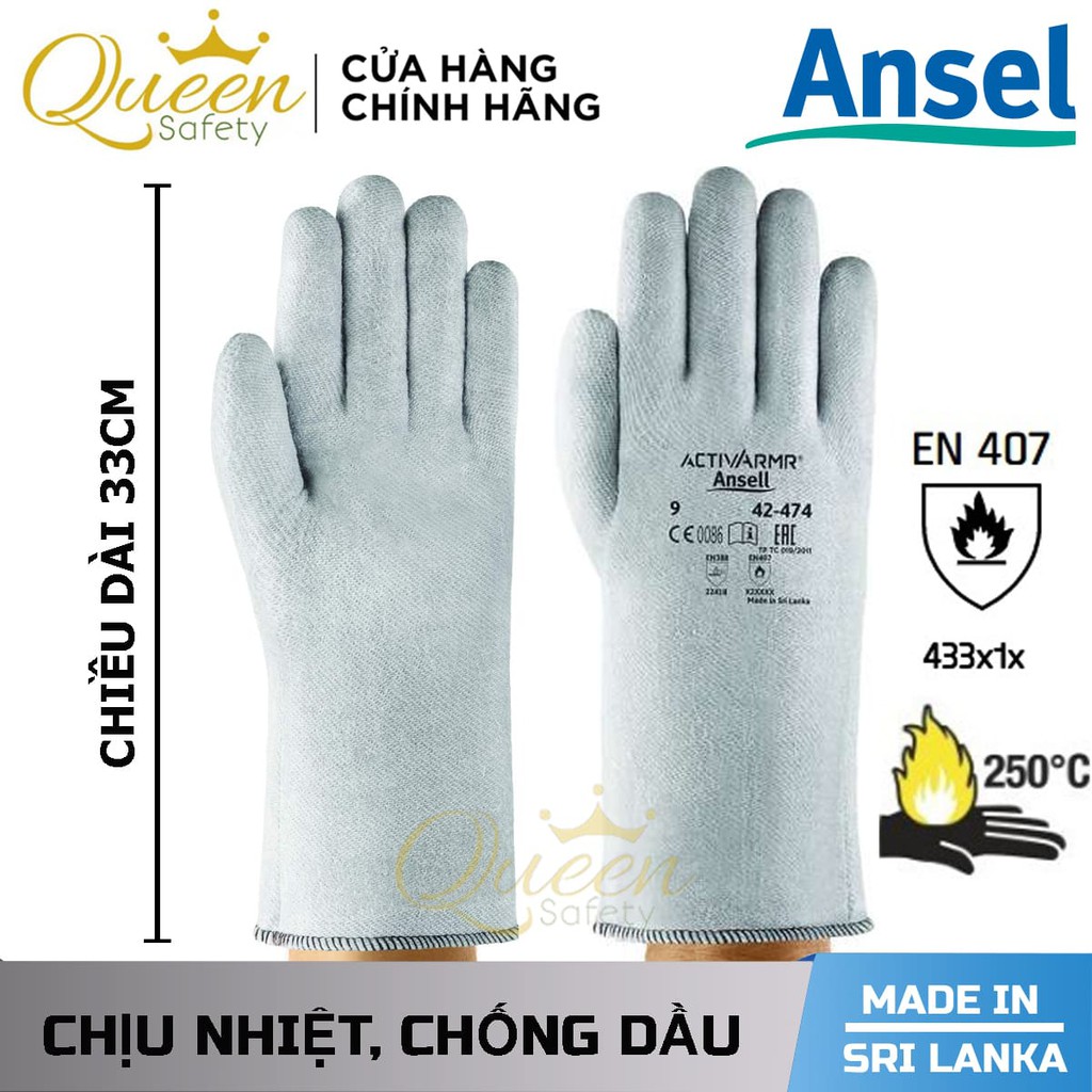 Găng tay chịu nhiệt ANSELL 42-474 với thiết kế mỏng, nhẹ nhưng khả năng chống nóng cực tốt, với khả năng cách nhiệt đến 400℉ (khoảng 200℃) bảo vệ tốt nhất đôi bàn tay trong lao động.✅ THÔNG SỐ KỸ THUẬT