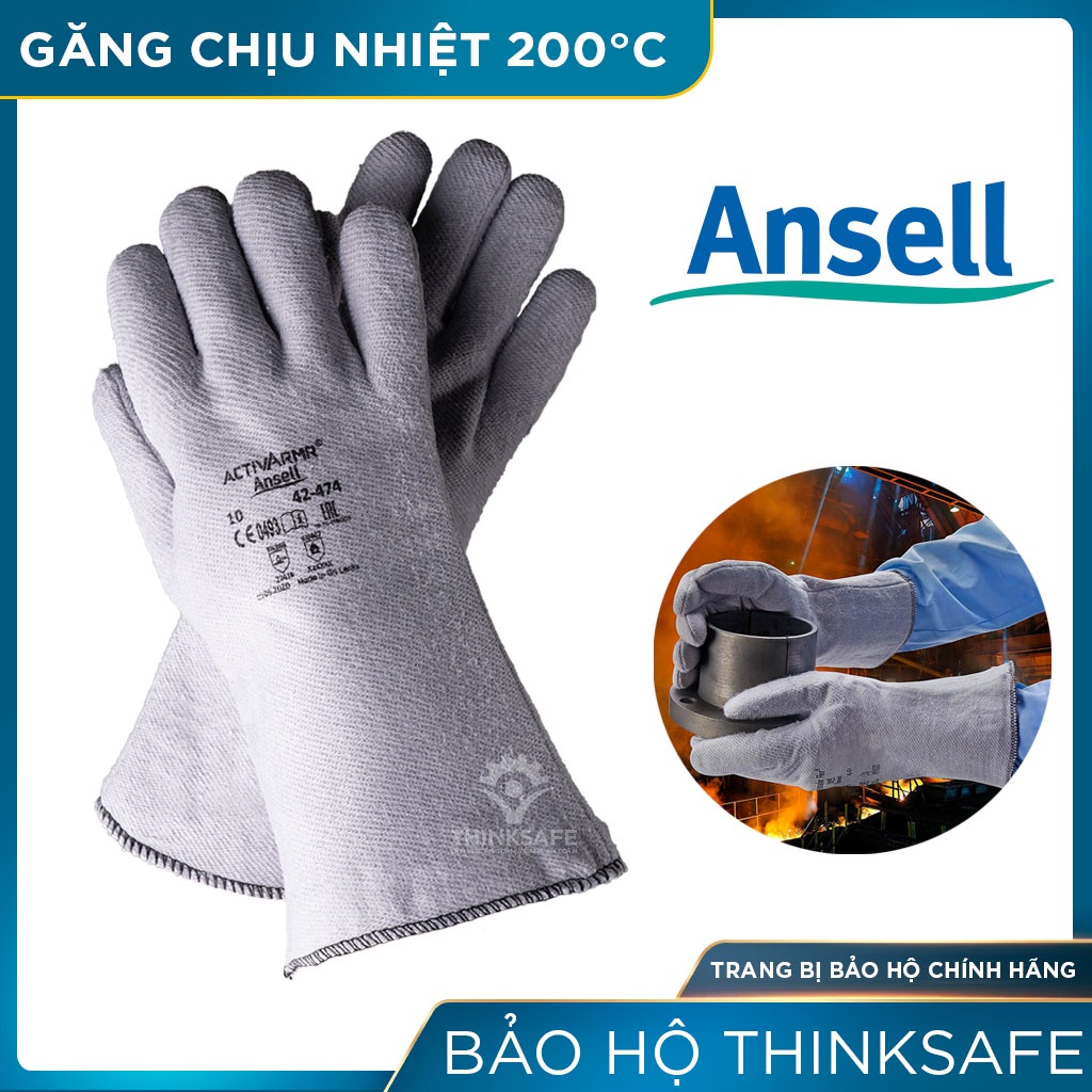 Giới thiệu Găng tay chịu nhiệt Ansell Thinksafe, bao tay chống nóng 204°C, chuyên dùng cầm lò nướng, cơ khí nóng, chống cắt 42-474