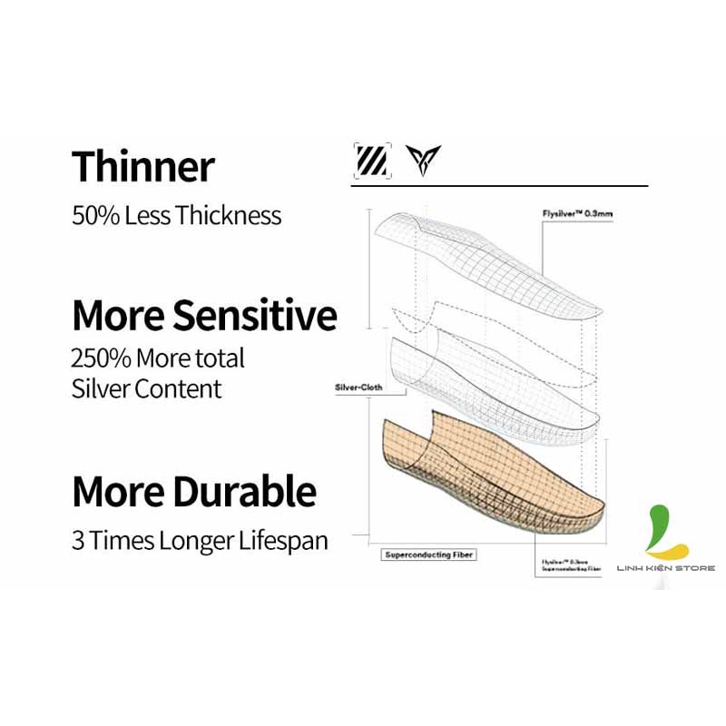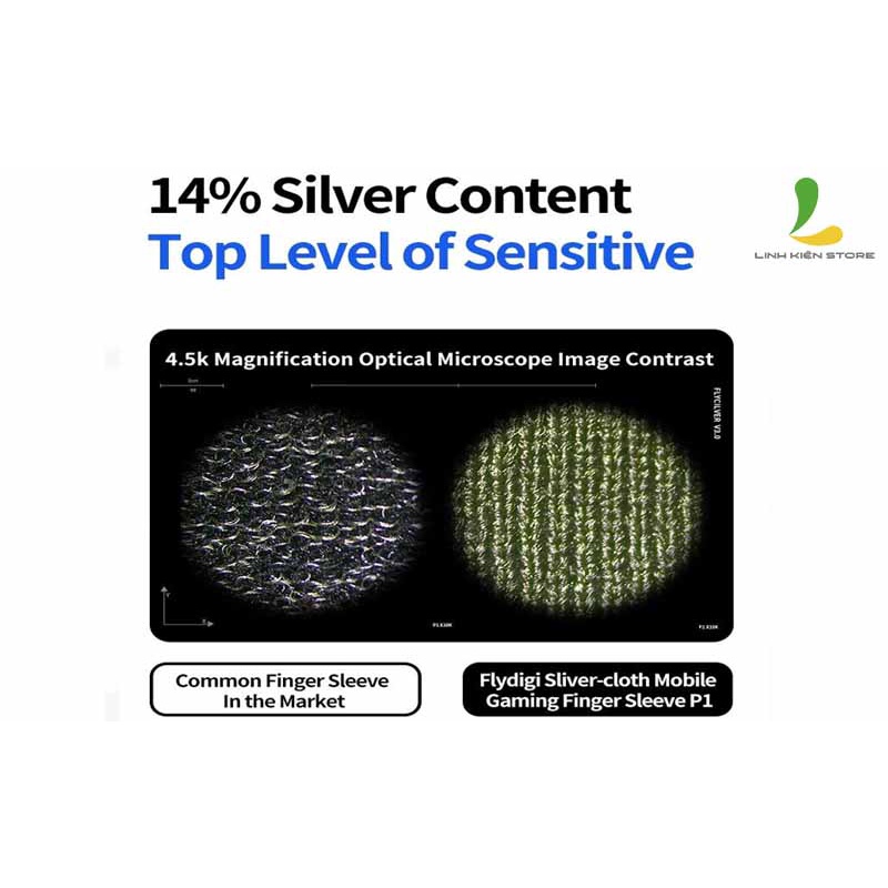 - Thao tác nhanh và mượt mà : Đa phần găng tay chơi game trên thị trường chứa hàm lượng bạc rất ít (chỉ chiếm 4%). Điều này khiến kết cấu của chúng rời rạc và dễ hư hỏng form dáng. Ngược lại, Flydigi Sleeve P1 chiếm đến 14% hàm lượng bạc nên rất bền bĩ. Tăng tính chính xác và linh hoạt hơn khi bạn bấm vào những icon nhỏ trên màn hình