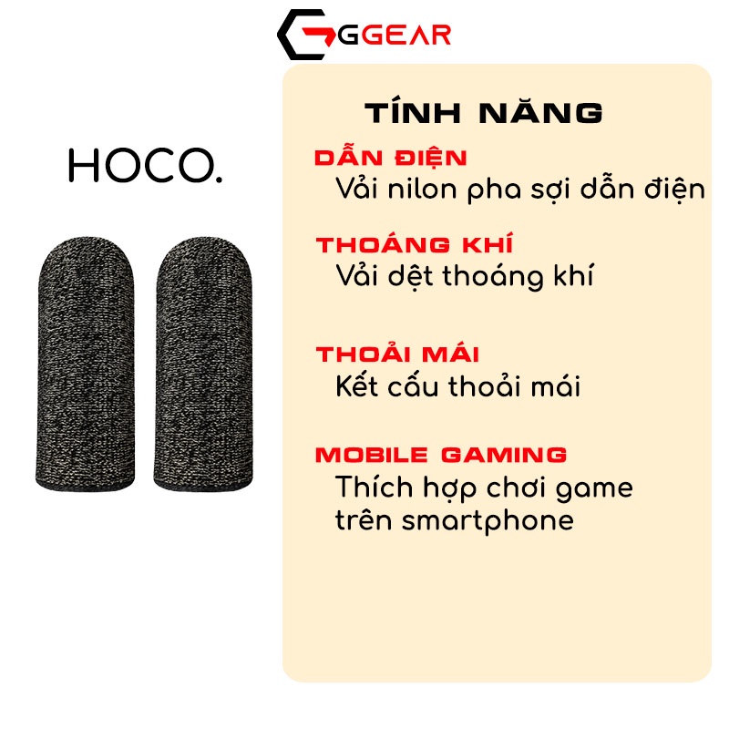 Gaming & Console > Phụ kiện console || Găng tay chơi game hai ngón GGEAR HOCO GM4 sợi dẫn điện cho mobile gaming thoáng khí thoải mái bền bỉCòn hàng