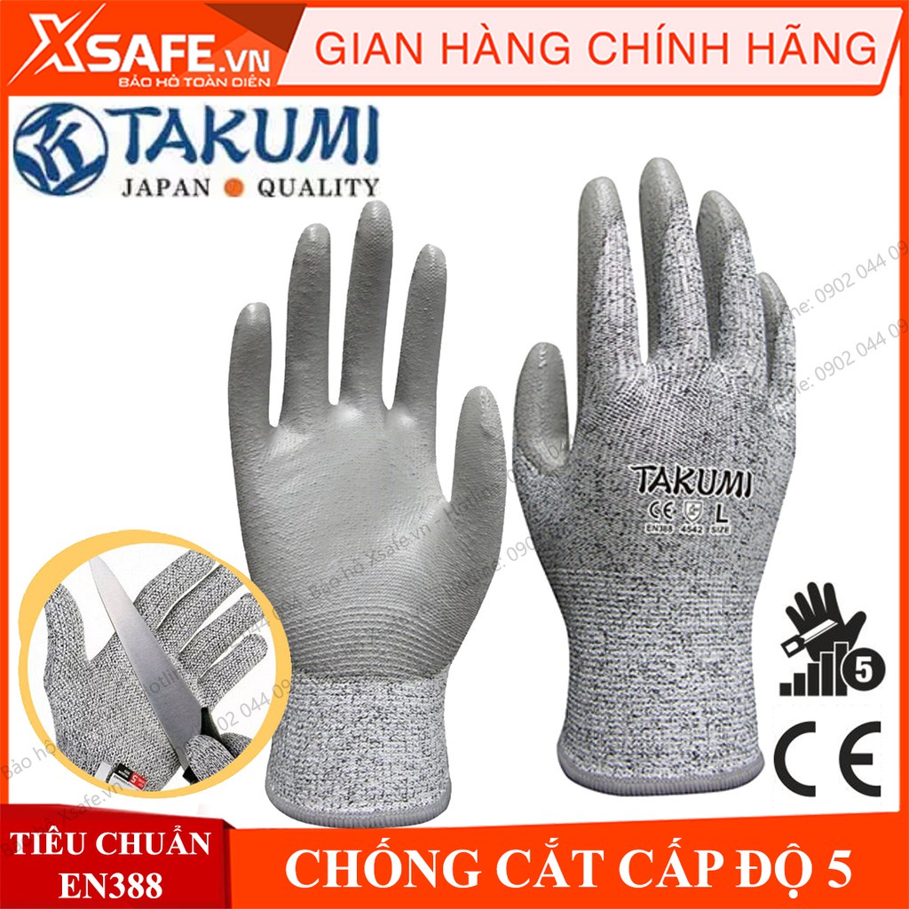 Găng tay chống cắt Takumi P-775 cấp độ 5 độ khéo léo cao - lòng bàn tay phủ PU chống dầu, tăng độ bám Găng tay bảo hộ