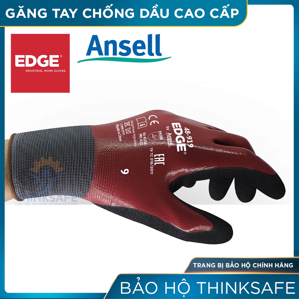 Găng tay chống dầu nhớt Ansell Thinksafe, bao tay bảo hộ đa dụng, chống cắt, phủ cao su, sử chữa, máy móc - 48-919