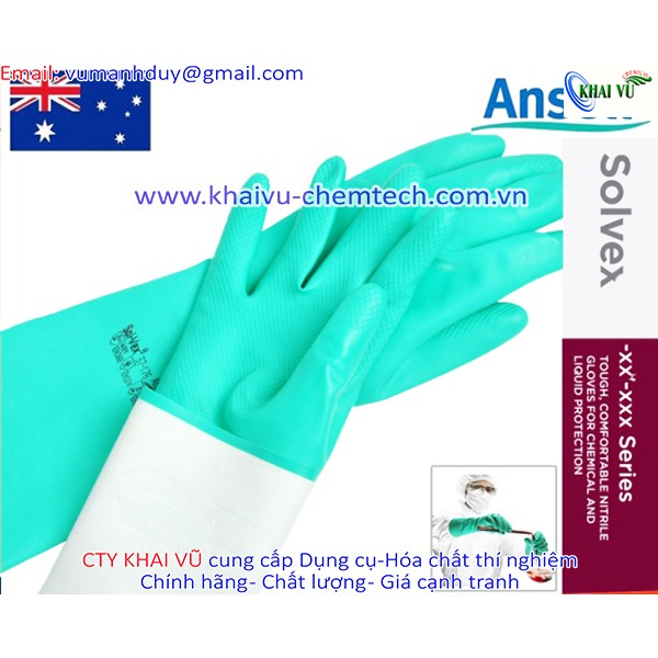 Công ty KHAI VŨ chuyên cung cấp Găng tay chống hóa chất Ansell 37-176 cấu tạo nitrile - chống hóa chất - axit - dầu nhớt - thấm hút mồ hôi tốt