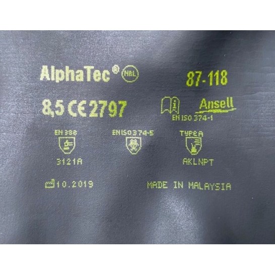 Nhà cửa & Đời sống > Dụng cụ & Thiết bị tiện ích > Găng tay, kính bảo hộ & mặt nạ || Găng tay chống hóa chất, axit mạnh màu đen Ansell 87-118 , găng tay cao su tự nhiên chống cắt, chống trơn trượtCòn hàng