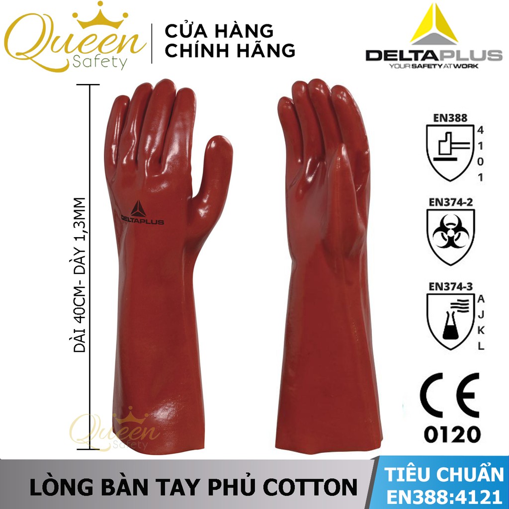 Găng tay chống hóa chất Deltaplus, bao tay lao động, cao su dày dặn, chống dầu, phù hợp theo tác cơ khí, đa năng PVCC400