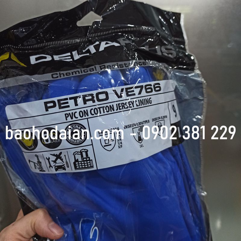 Găng tay chống hóa chất Petro VE766:- Thương hiệu: Delta plus