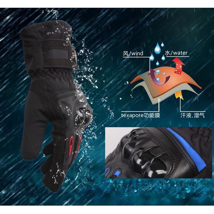 Găng tay chống nước khá tốtCó lớp nỉ giúp giữ ấm tay mùa đôCó gù nhựa bảo vệ tốt hơn Ngón tay có thể cảm ứng được dễ dàng vuốt màn hình điện thoại cảm ứng rất tiện lợiGăng tay chống nước Probiker Water proof gù nhựa