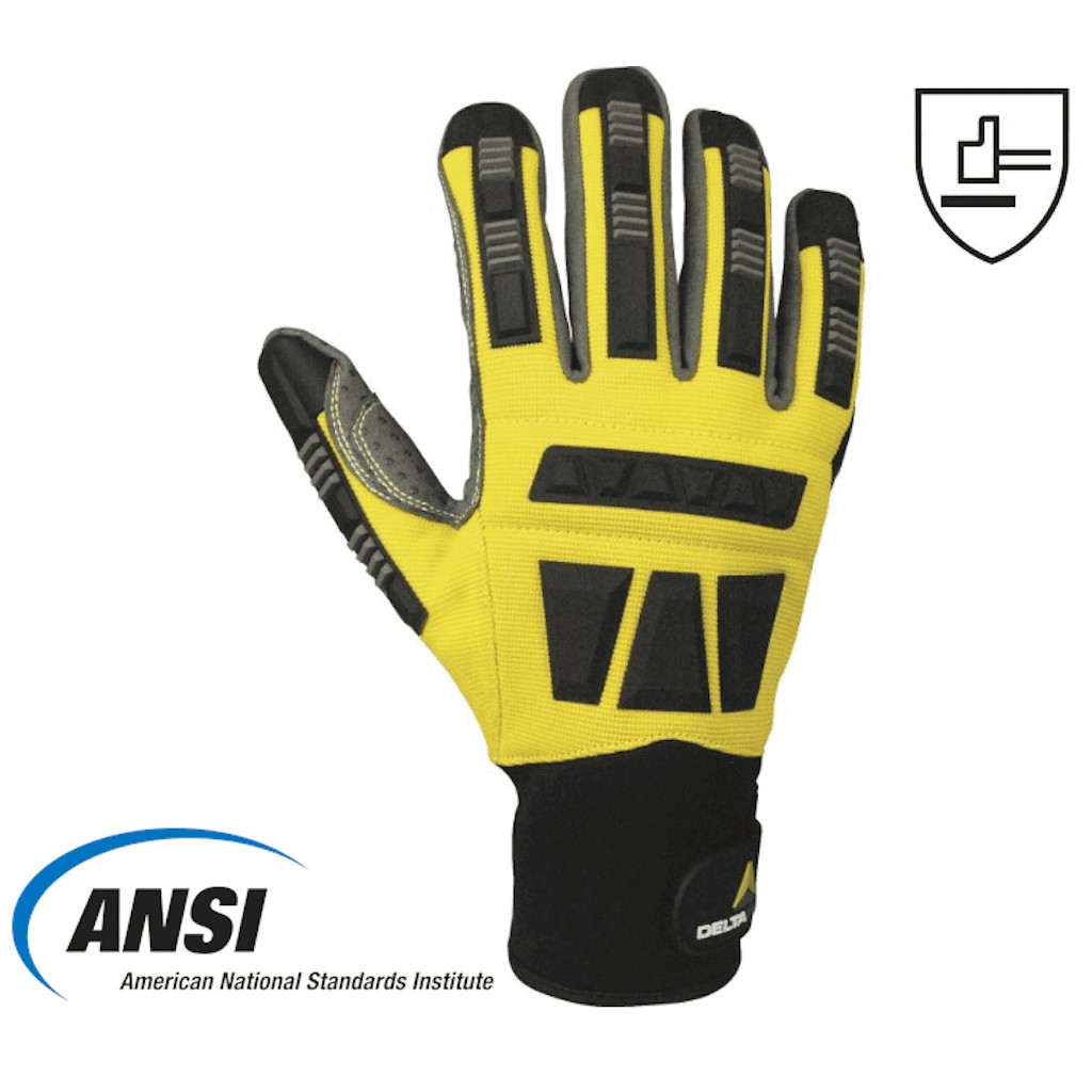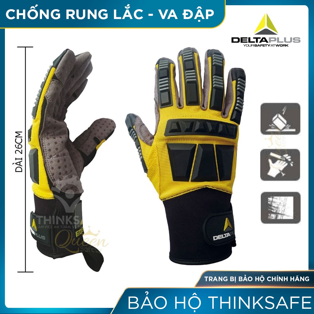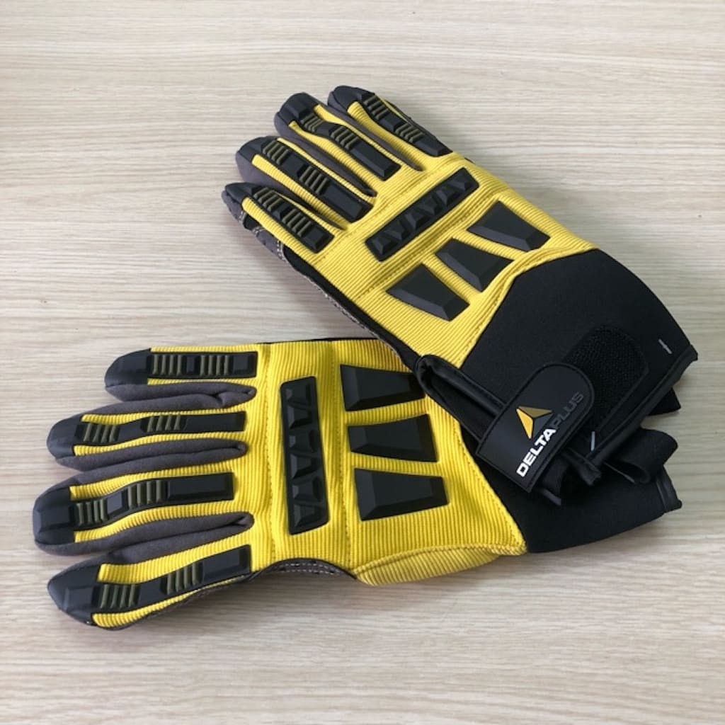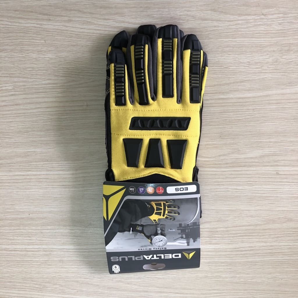 Găng tay chống rung và va đập Deltaplus EOS VV900- Chất liệu: mu bàn tay được làm bằng Polyester / polyurethane có phủ PVC, lòng bàn tay làm bằng vải Polyamide / Polyurethane với các chấm PVC nhằm đảm bảo độ bám, mềm mại khi cử động. Sợi Kevlar®. 8 cm và cổ tay bằng neoprene để chống tác động mạnh của cơ khí khi rung lắc và va đập, chống dầu nhớt.