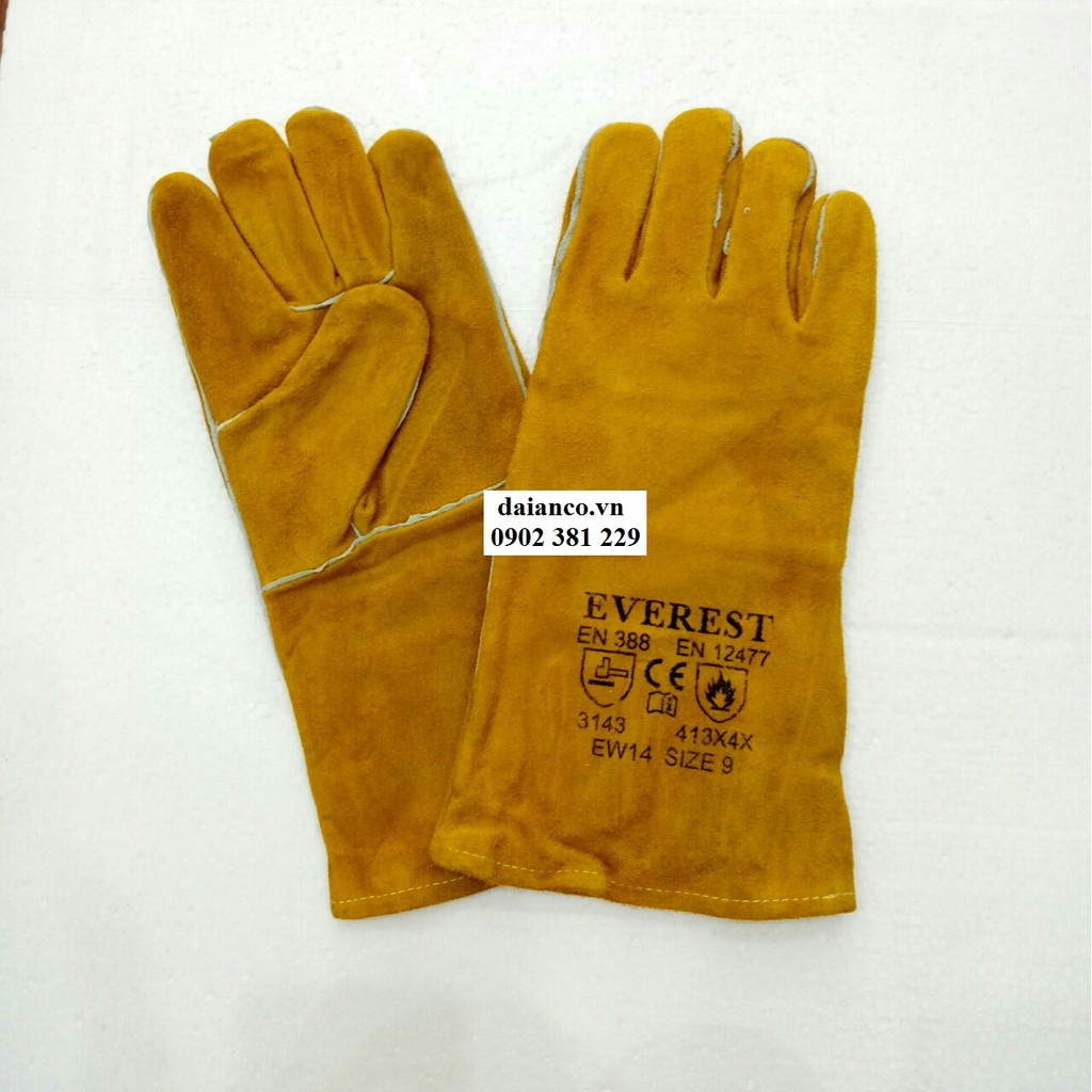 - Găng tay da hàn Everest EW14 được sử dụng trong ngành hàn, hàn điện, hàn tích, công nghiệp nặng... giúp bảo vệ tay khỏi các tác nhân gây hại như: tia lửa hàn, kim loại văng bắn, nhiệt độ cao...Ngoài ra, găng tay còn giúp bảo vệ tay khỏi các tác nhân cơ học như: cắt đứt, đâm xuyên...G- Chiều dài: 14″ (36cm).