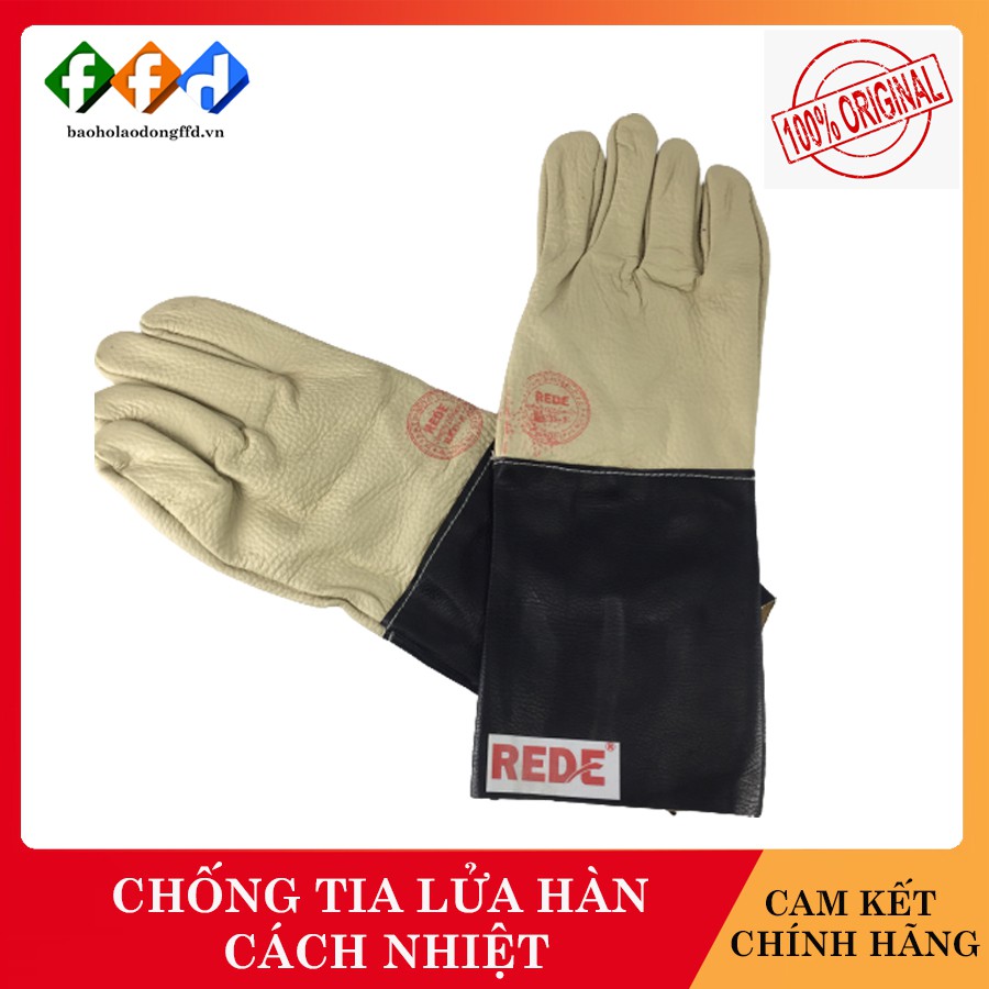 Găng tay da thợ hàn Red-E GTD 350, găng tay da cao cấp, găng tay chống tia tửa hàn, cách điện [FFD]