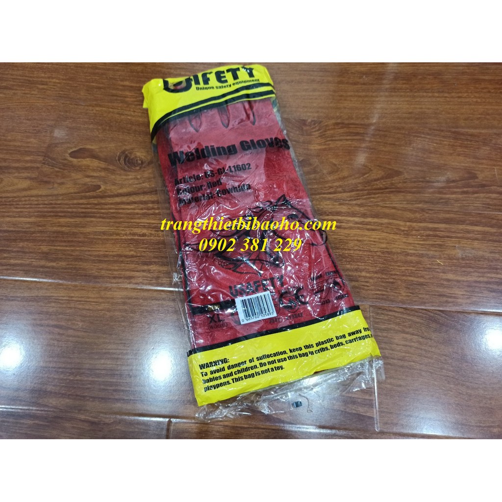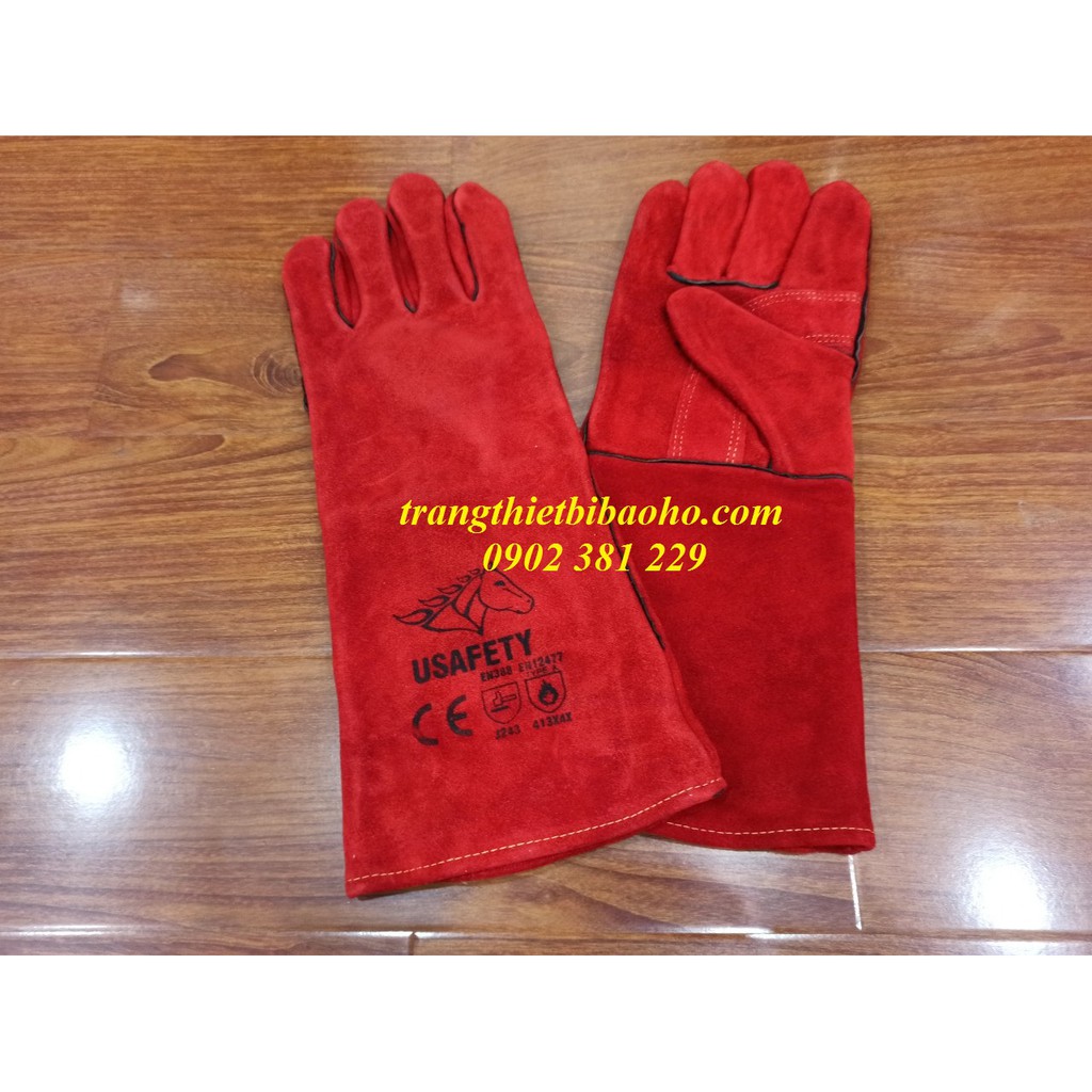 Nhà cửa & Đời sống > Dụng cụ & Thiết bị tiện ích > Găng tay, kính bảo hộ & mặt nạ || Găng tay da thợ hàn Usafety US-GL-L1602 - màu đỏ (dài 40cm)Còn hàng