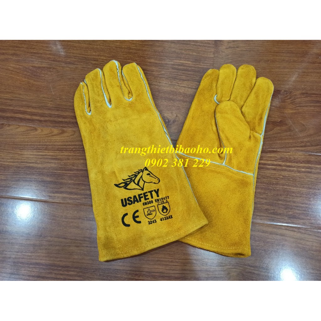 Găng tay da thợ hàn Usafety US-GL-L1601- Màu vàng