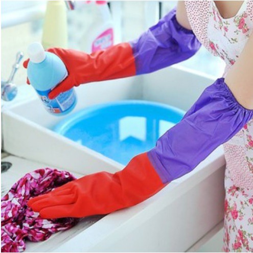 Găng tay dài tay cao su có lót bông (Giao màu ngẫu nhiên)