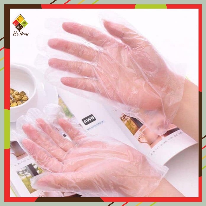 Găng tay dùng 1 lần BEHOME Bao tay nilon nấu bếp Găng tay nhuộm tóc (Hộp 100c/50 đôi)