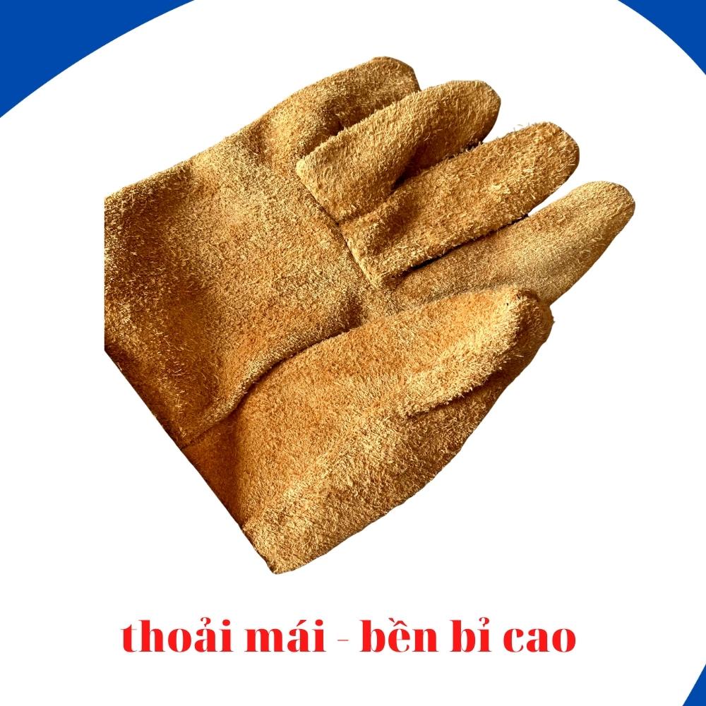 Găng tay hàn, Bao tay hàn da bò, chống cháy, chịu nhiệt/tia lửa văng bắn, lớp lót chống hầm bí