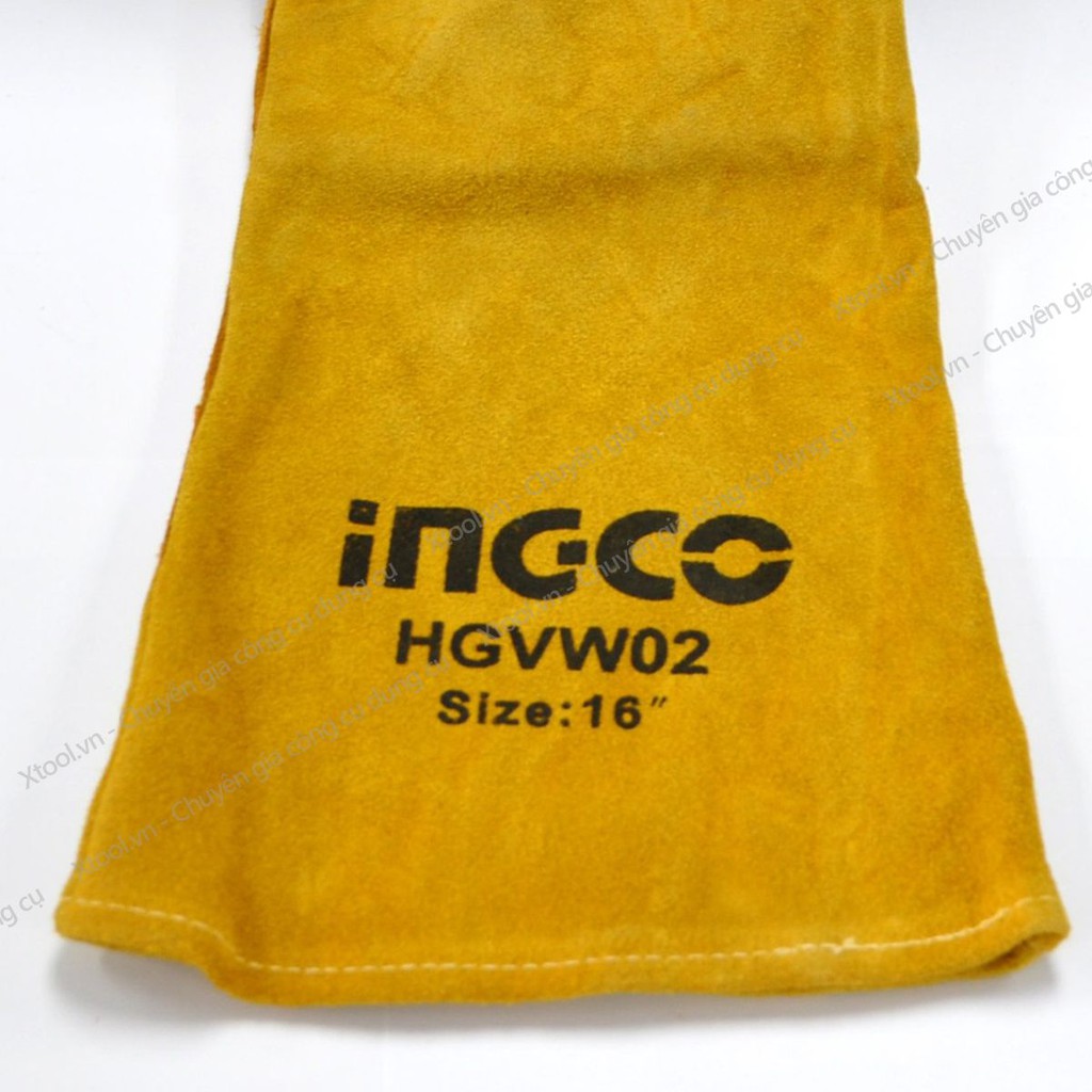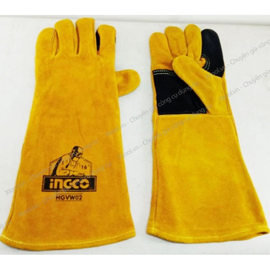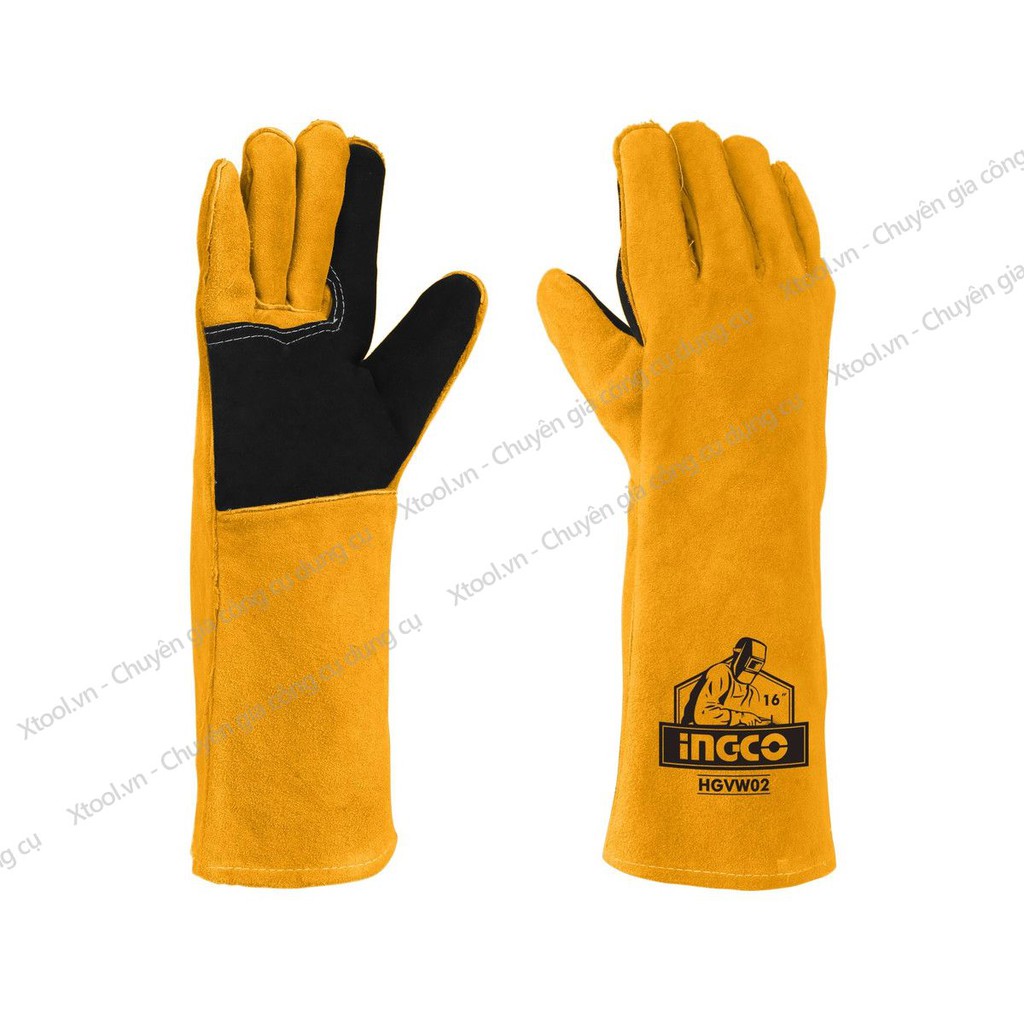 Găng tay hàn INGCO HGVW02 16" bao tay vải da bảo hộ lao động da bò thật chịu nhiệt, hàn hồ quang, mềm mại thao tác chuẩn