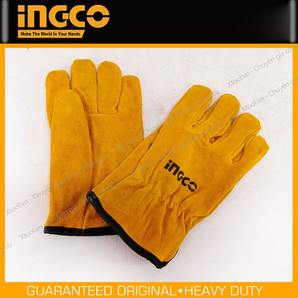 Găng tay hàn ngắn INGCO HGVC02 10" bao tay vải da bảo hộ lao động da bò thật chịu nhiệt hàn tig mềm mại thao tác chuẩn