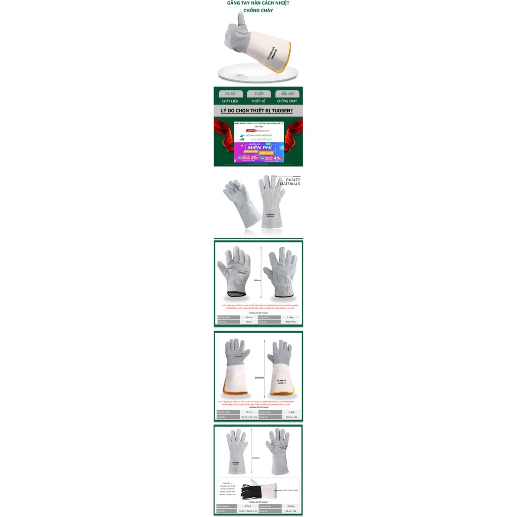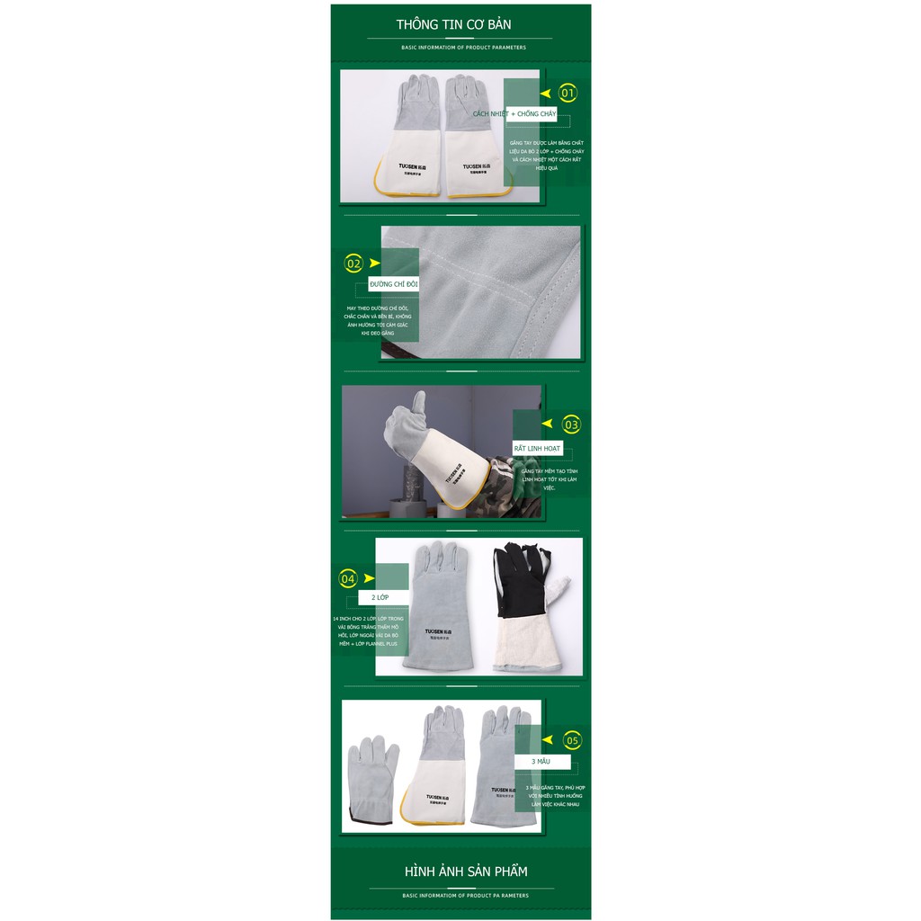 Giới thiệu Găng tay hàn nhiệt chống cháy DA BÒ, Găng tay bảo hộ da hàn thấm hút mồ hôi, chống cháy, chịu nhiệt, chống cắt, độ bền c