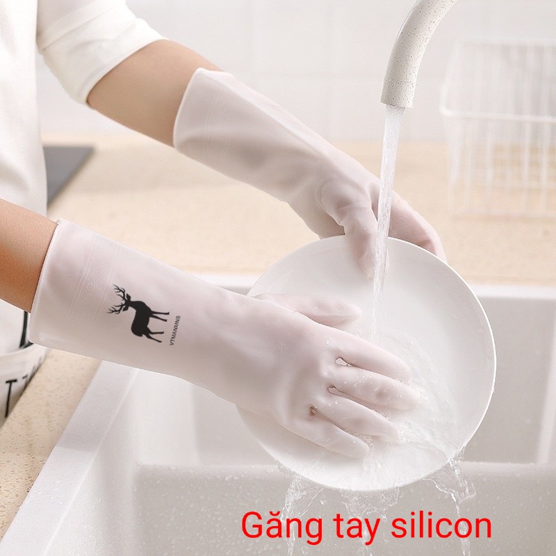 Găng tay huơu ngắn Silicon siêu dai, Găng tay rửa bát nhà bếp cao cấp tiện dụng