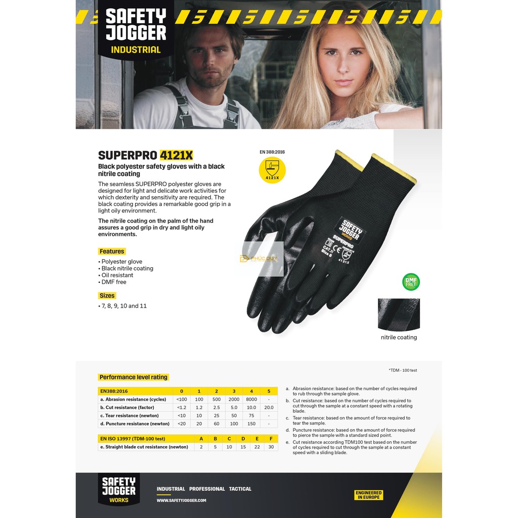- Găng Tay Chống Dầu polyester SUPERPRO liền mạch của Safety Jogger được thiết kế cho các hoạt động làm việc nhẹ nhàng và tinh tế mà sự khéo léo và độ chính xác được yêu cầu cao. Lớp phủ trên lòng găng tay tạo độ bám lớn khi làm việc trong môi trường dầu mỡ.