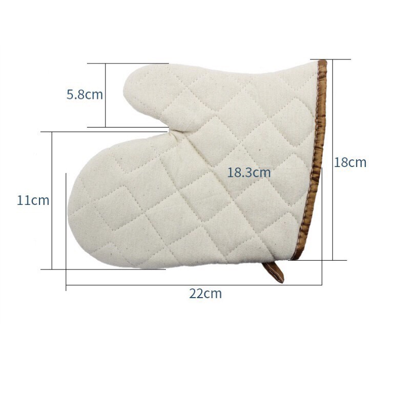 - Kích thước găng tay vải làm bánh là 20.5cm chiều dài, rộng 14cm, rất thoải mái khi sử dụng.