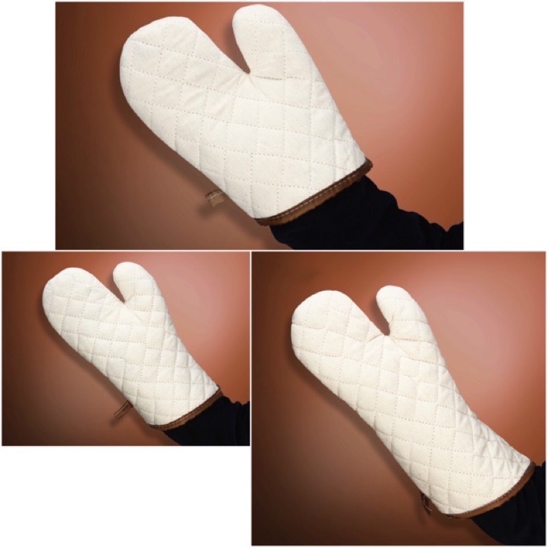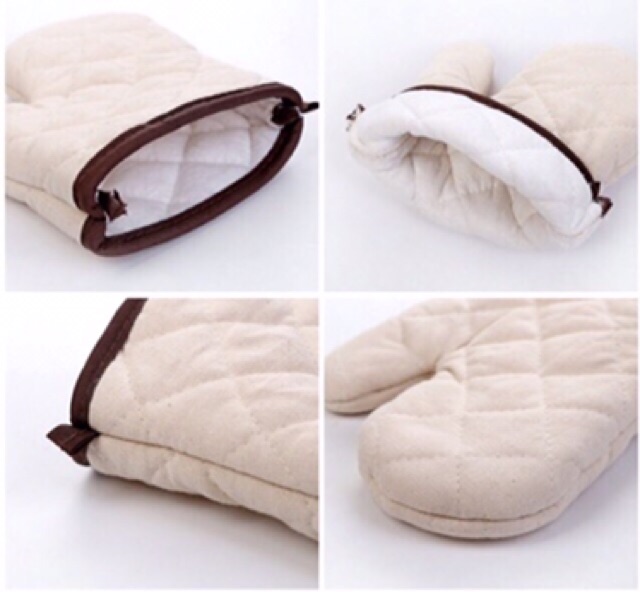 - Bộ găng tay vải chống nóng cao cấp bạn co thể dùng trong quá trình làm bánh là một dụng cụ bánh vô cùng tiện lợi trong các công việc nướng bánh cho các chị em.Với ưu điểm là 2 lớp vài dày, chống nóng tốt, tiện lợi cho các chị em thao tác với khuôn trong lò nướng bánh.