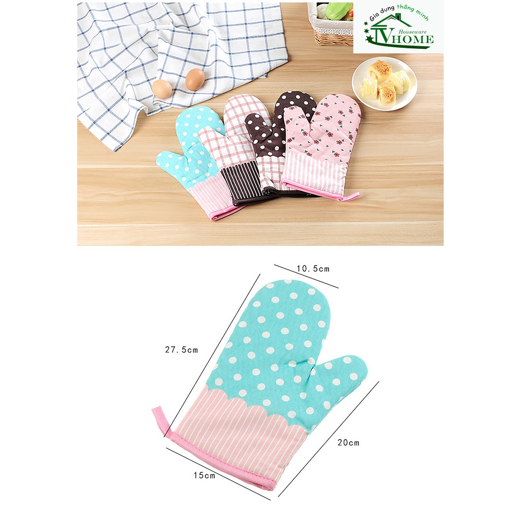 - Bộ găng tay vải chống nóng cao cấp bạn co thể dùng trong quá trình làm bánh là một dụng cụ bánh vô cùng tiện lợi trong các công việc nướng bánh cho các chị em.Với ưu điểm là 2 lớp vài dày, chống nóng tốt, tiện lợi cho các chị em thao tác với khuôn trong lò nướng bánh. .