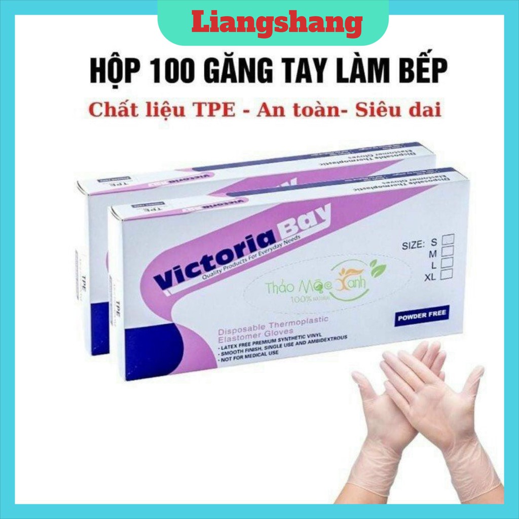 🧩găng tay nấu ăn - găng tay làm bếp siêu dai Victoria Bay chất liệu TPE không mùi chống nhăn hộp 100 cái size M🔥 Găng tay nilon siêu dai Victoria Bay, các chị dùng đi chợ, nấu ăn đều rất tiện.