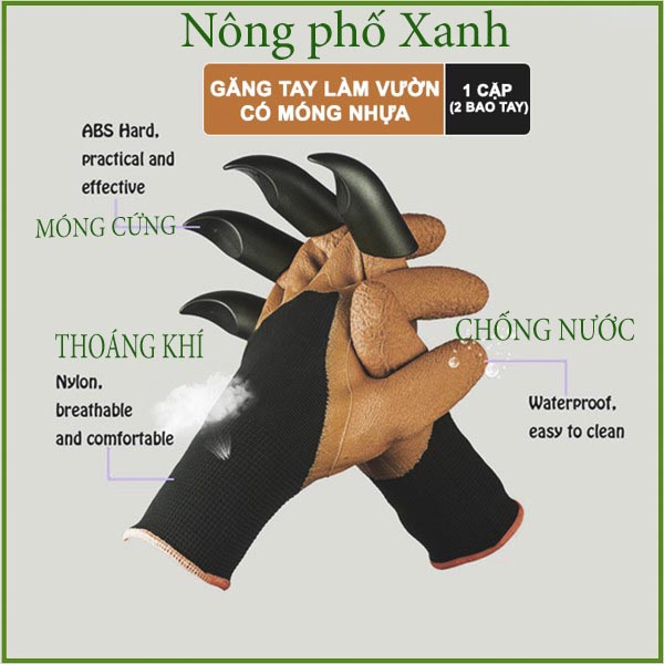 - Bao Tay Làm Vườn Có 4 Móng Chuyên Dụng Độc Đáo. Móng vuốt bằng nhựa ABS cứng có thể thay thế cho xẻng, dao... trong những trường hợp nhẹ nhàng. Vô cùng tiện dụng.