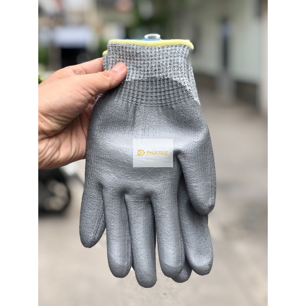 - Ngoài ra, mật độ vải 13 cũng giúp tăng khả năng ôm tay, tạo cảm giác chính xác khi thao tác với các chi tiết nhỏ. - - - - Găng được phủ PU ở lòng bàn tay để tăng khả năng bám dính khi cầm nắm vật dụng.