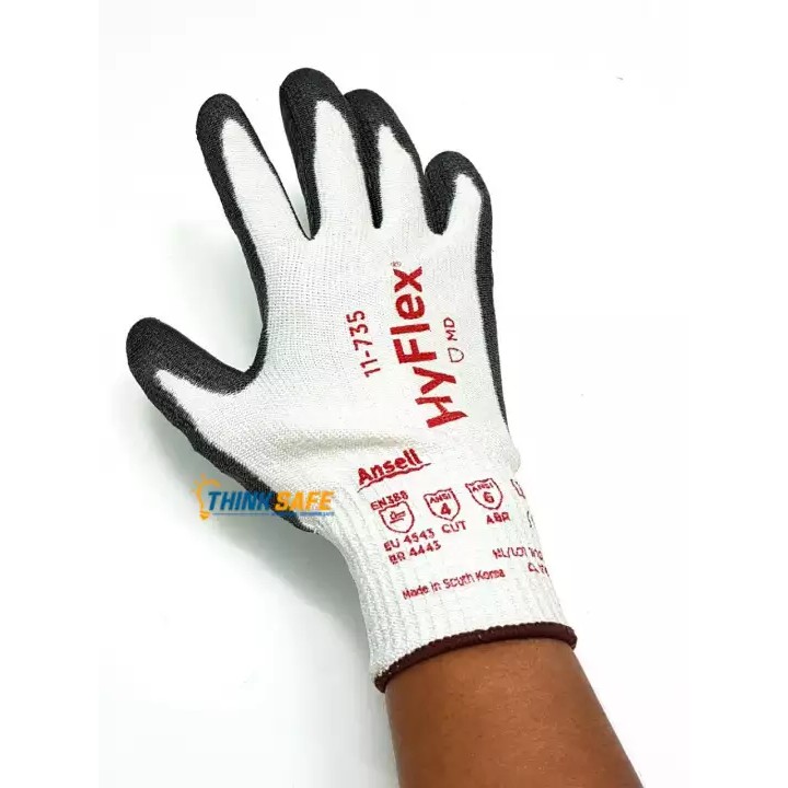 Giới thiệu Găng tay lao động Ansell Thinksafe, bao tay bảo hộ chống cắt cấp độ 4 được phủ PU chống dầu nhớt, ôm tay 11-735