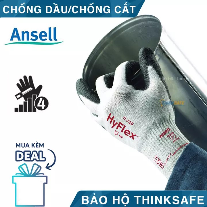 Nhà cửa & Đời sống > Dụng cụ & Thiết bị tiện ích > Găng tay, kính bảo hộ & mặt nạ || Găng tay lao động Ansell Thinksafe, bao tay bảo hộ chống cắt cấp độ 4 được phủ PU chống dầu nhớt, ôm tay 11-735Còn hàng