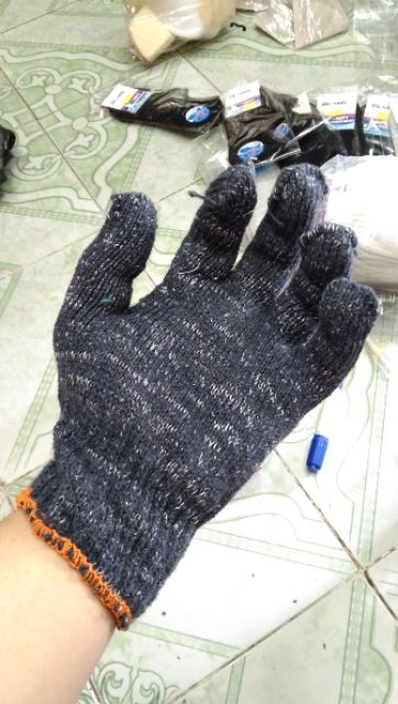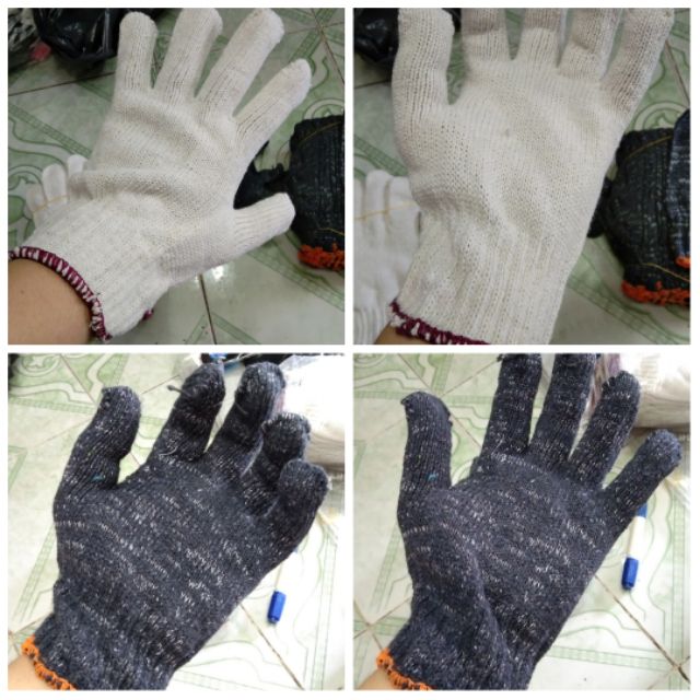 Tên sản phẩm : găng tay lao động, hay bao tay lao động. Chất liệu dệt từ len.Hai màu trắng và xám đen như hình.