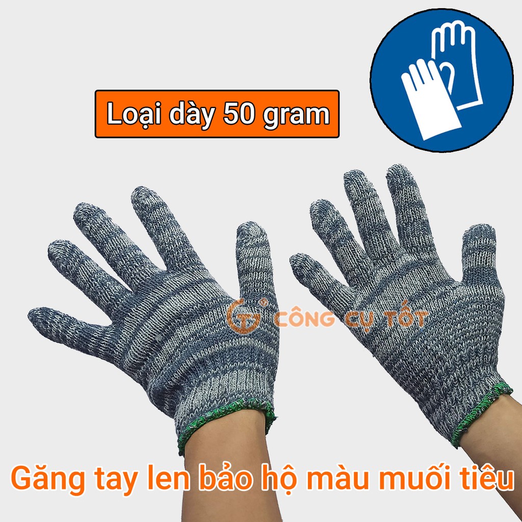 Găng tay len bảo hộ màu muối tiêu loại dày 50 gram được dệt từ chất liệu len tự nhiên chống khuẩn cực tốt nên đảm bảo an toàn cho da tay, không gây cảm giác bí bách và mùi khi sử dụng. Sản phẩm là phụ kiện bảo hộ lao động nên có dành cho mỗi người thợ.Găng tay dày dặn, trọng lượng lên tới 50g, bảo vệ tốt đôi tay cho người lao động