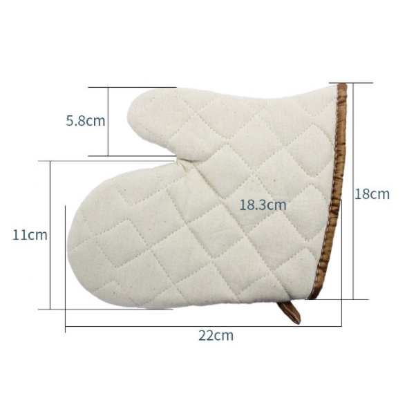 Với thiết kế dài, lạ mắt, gang tay thuận tiện làm được nhiều việc, luôn là bạn đồng hành không thể thiếu để bạn thỏa niềm đam mê nấu nướng của mình đó. Ngoài ra gang tay này còn vừa tay, dễ sử dụng, chất liệu vải thô trần bông, cách nhiệt tốt, an toàn khi làm bánh và nấu ăn gia đình