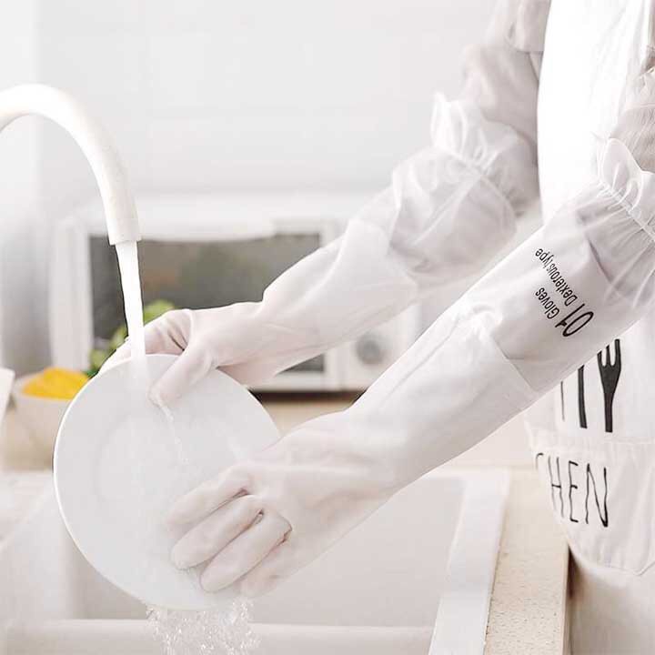 Găng tay rửa chén bát lót nỉ siêu dai - Cổ cao - Có chun chống tụt--------------------------------------------------