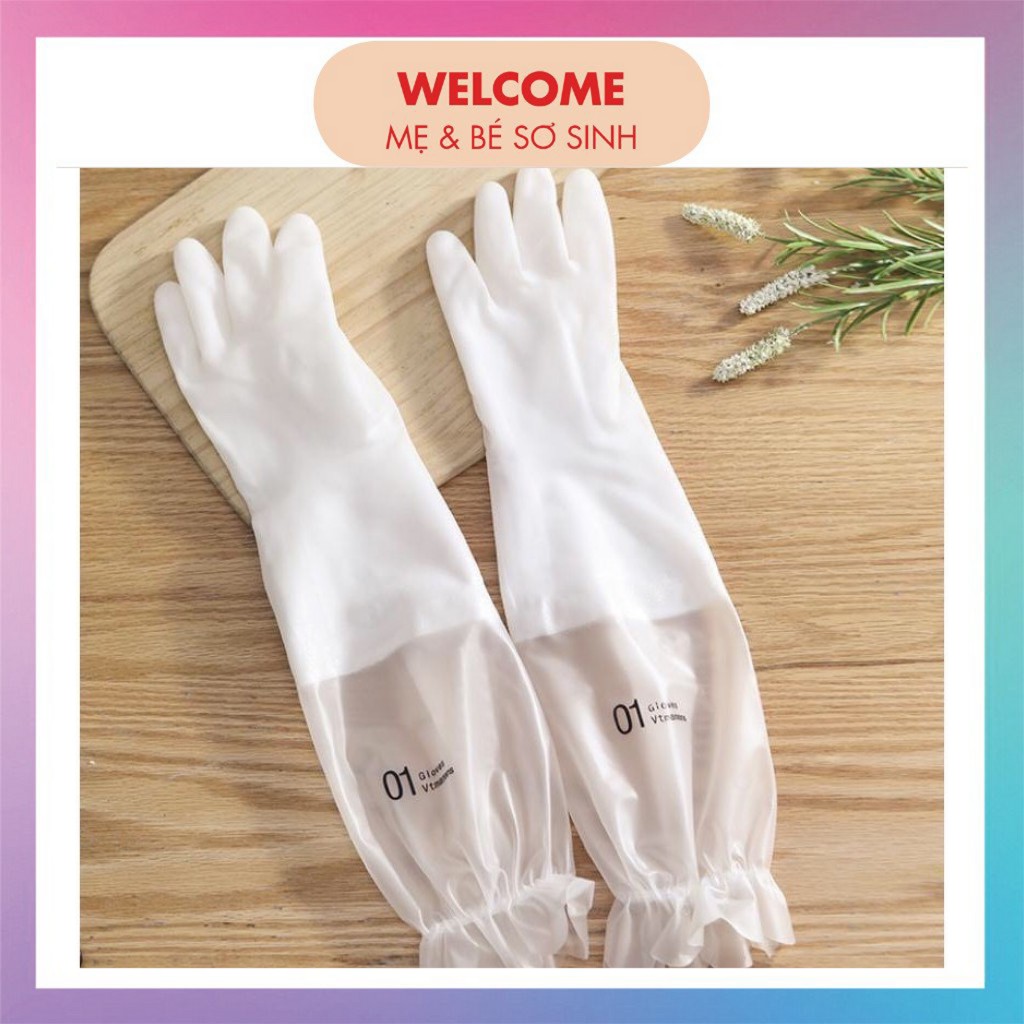 GĂNG TAY LÓT NỈ ⚡️FREESHIP⚡️ Găng Tay Rửa Chén Bát Lót Nỉ Cổ Cao Có Chun Chống Tụt