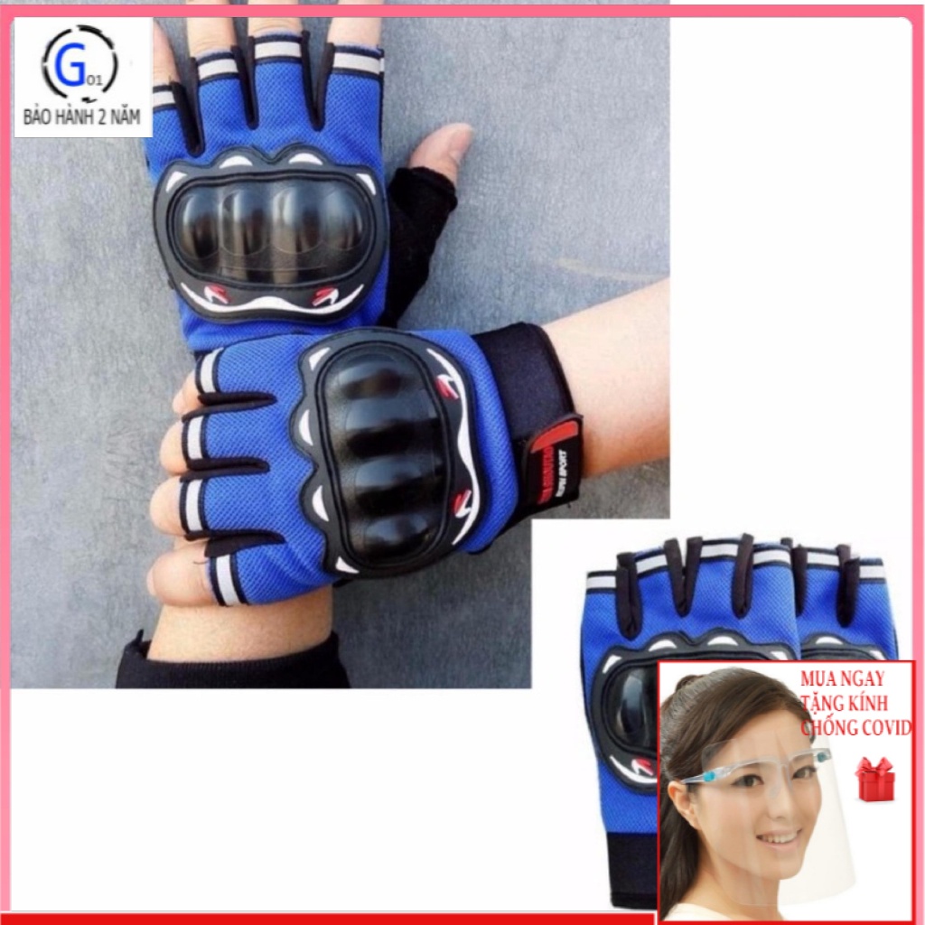 Găng Tay Mô tô Hở Ngón Có gù GT(xanh đen)