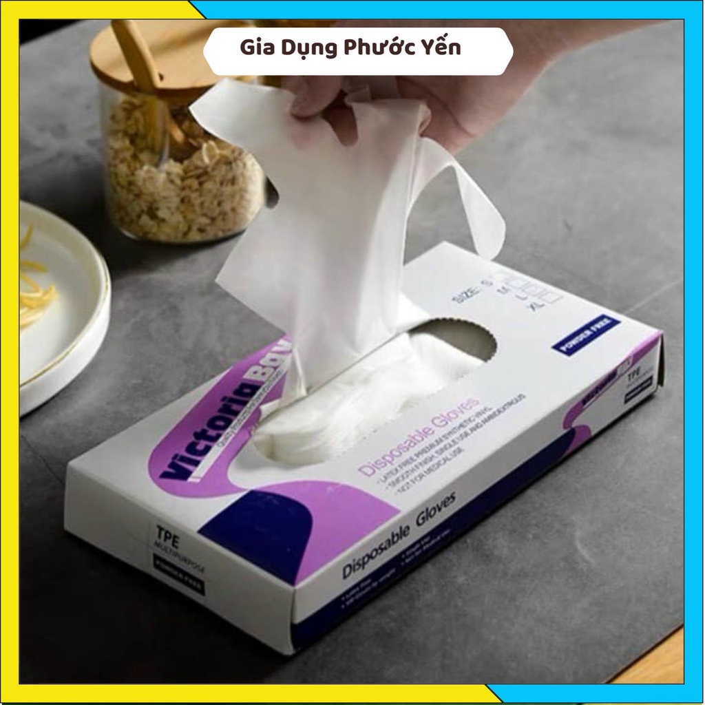 Găng tay nấu ăn làm bếp siêu dai Victoria Bay chất liệu TPE không mùi chống nhăn (hộp 100 cái)