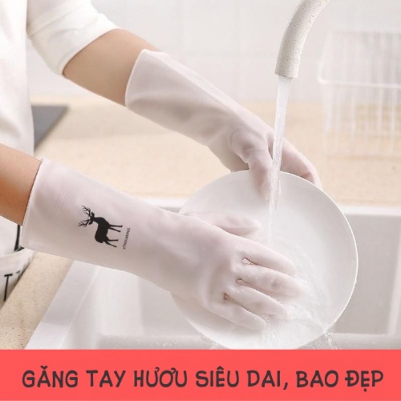 Găng tay ngắn rửa chén bát hình hươu siêu dai tiện dụng