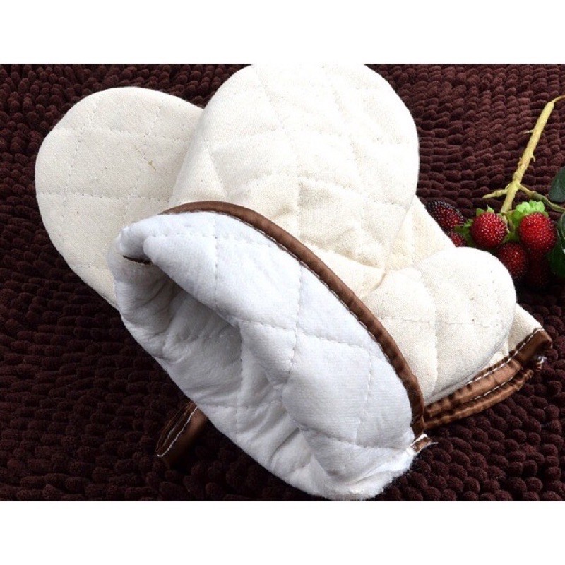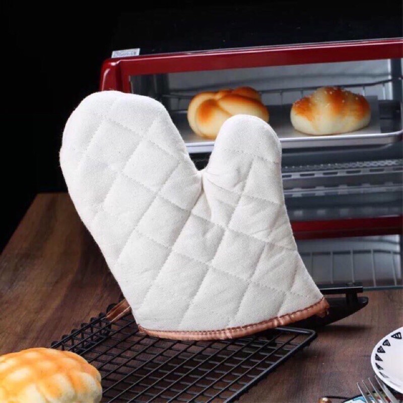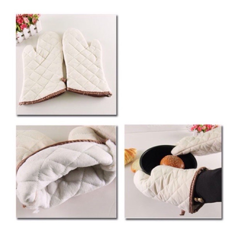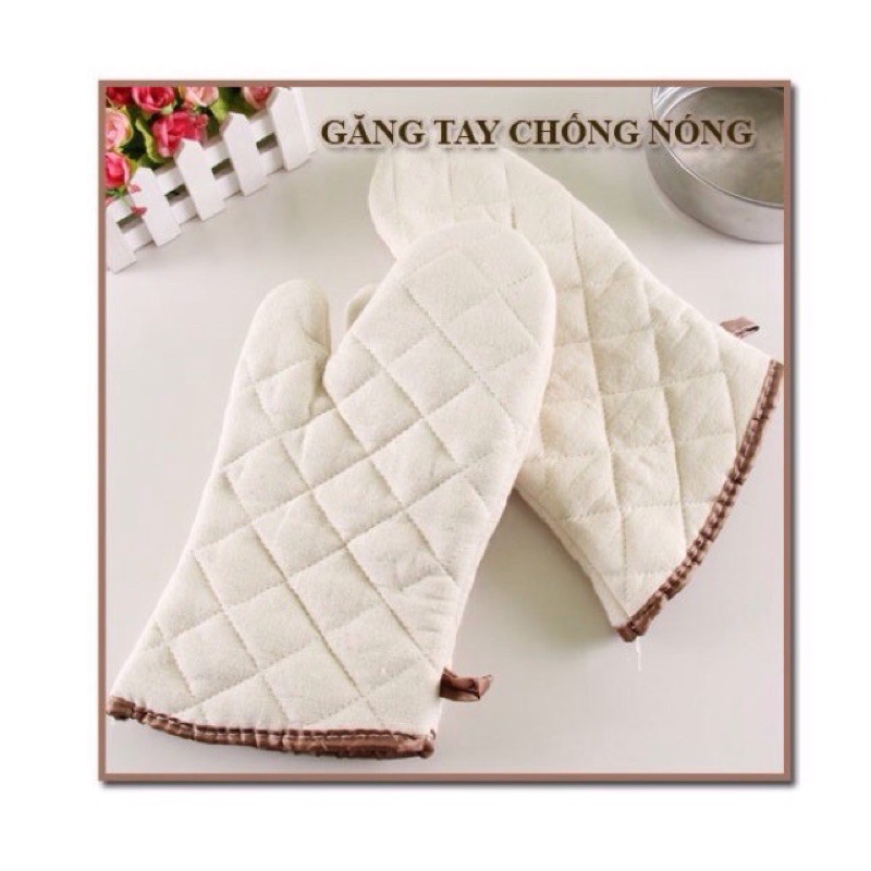 - Bộ găng tay vải chống nóng cao cấp bạn co thể dùng trong quá trình làm bánh là một dụng cụ bánh vô cùng tiện lợi trong các công việc nướng bánh cho các chị em.Với ưu điểm là 2 lớp vài dày, chống nóng tốt, tiện lợi cho các chị em thao tác với khuôn trong lò nướng bánh.
