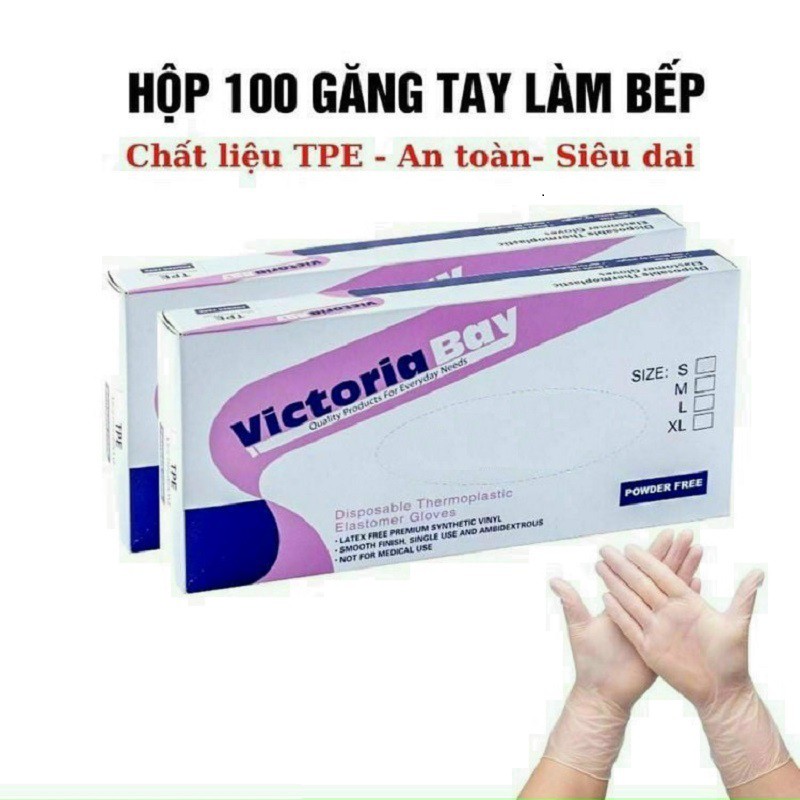 Găng Tay Nhà Bếp Dùng 1 Lần Victoria Chất Liệu TPE Mềm Dẻo Chống Nhăn Siêu Dai Trong Suốt