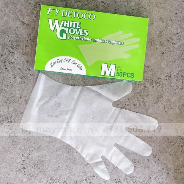 Găng tay nilon dẻo CPE cao cấp, size M (hộp 50 chiếc)