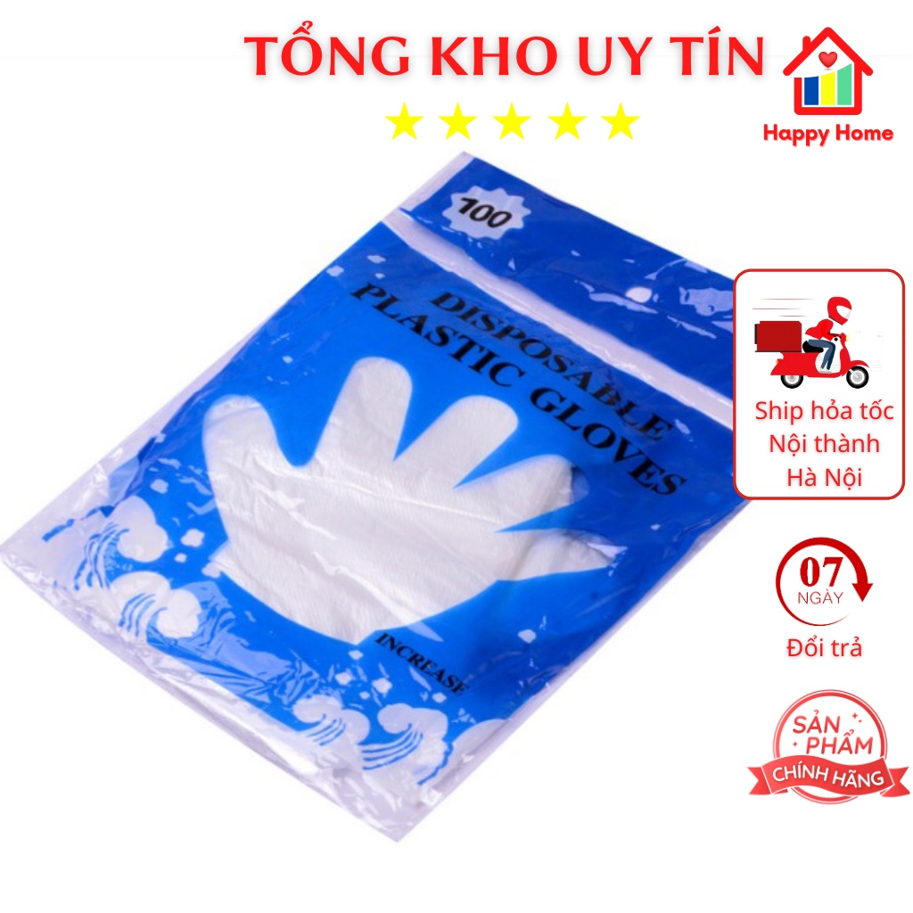 Găng tay nilon dùng 1 lần, gói 100 chiếc siêu dai Happy Home - Sản phẩm tiện ích của mỗi gia đình