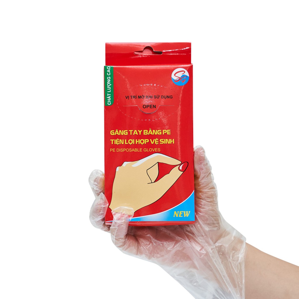 Nhà cửa & Đời sống > Dụng cụ & Thiết bị tiện ích > Găng tay, kính bảo hộ & mặt nạ || Găng tay nilon, hộp 100 găng tay tiệt trùng dùng trong nấu nướng, vệ sinh hằng ngày cho béCòn hàng