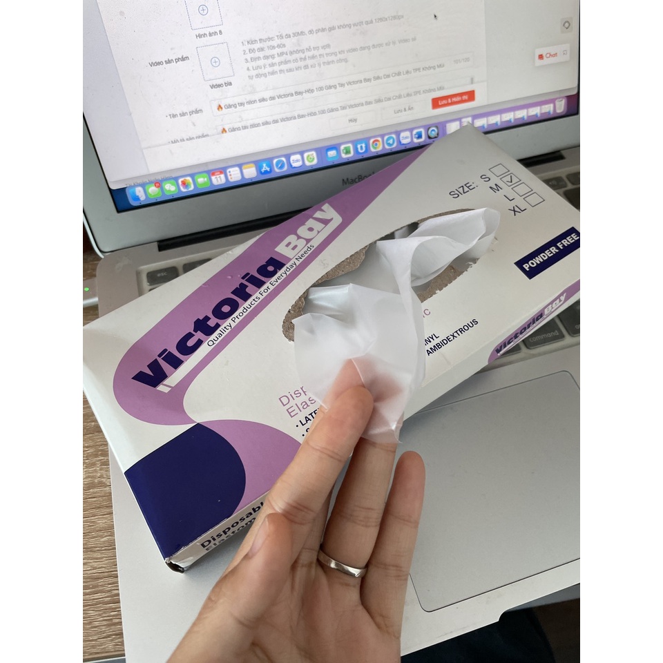 Giới thiệu Găng tay nilon siêu dai Victoria Bay-Hộp 100 Găng Tay Victoria Bay Siêu Dai Chất Liệu TPE Không Mùi