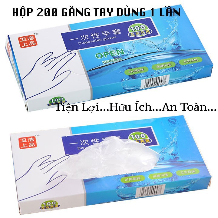 Găng tay nilong hộp 200 cái - găng tay nhựa dùng 1 lần